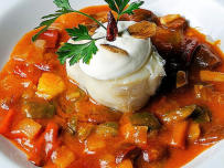 Bacalao con Pisto de la casa.