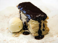 Chocolate caliente y Helado de vainilla