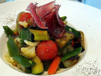 Verduras a la brasa con huevo de
