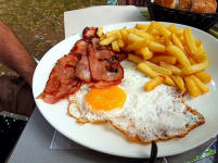 Huevo frito con Beicon y Patatas.
