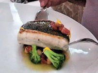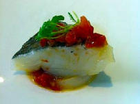 Lubina a la brasa en el jugo de