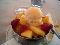 Macedonia de frutas con helado.