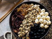 Soja, Cebolla morada, Wakame,