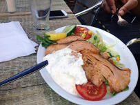 Salmón con costra de Hierbas servido,