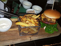 con cerveza, remoulade de curry y