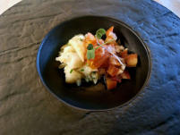 Aperitivo: Bacalao encebollado.