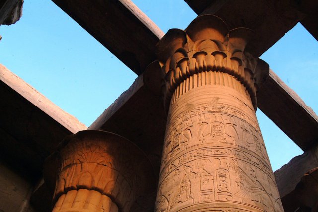 Templo de Kom Ombo: Bajorrelieve y jeroglíficos de las columnas.