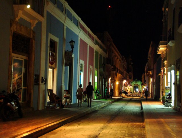 Vista nocturna: Edificios coloniales