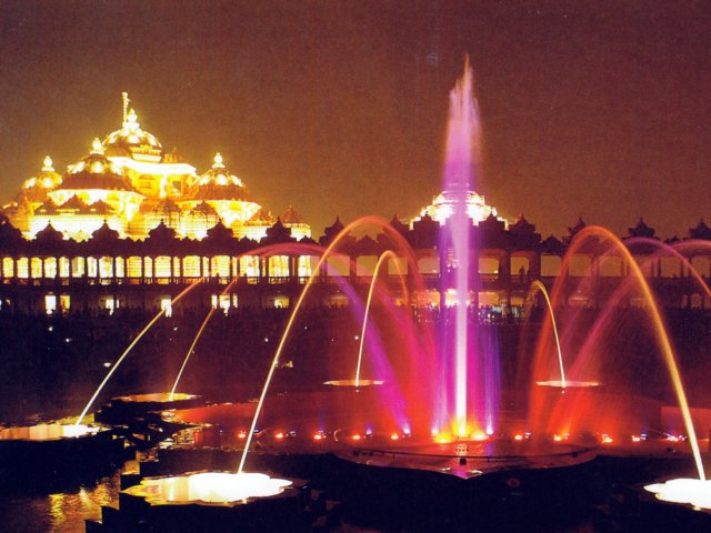 Templo de Akshardham: Iluminación como luces celestiales en la noche