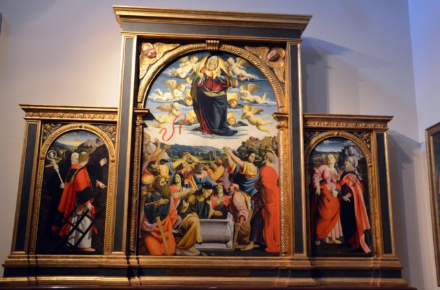 Pinacoteca: San Antonio Abad entre los Santos Sebastián, Crstóbal, Venancio y Rocco (Antonio Vivarini)
