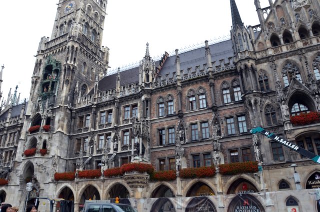 Marienplatz: Detalle de la fachada. Estatuas