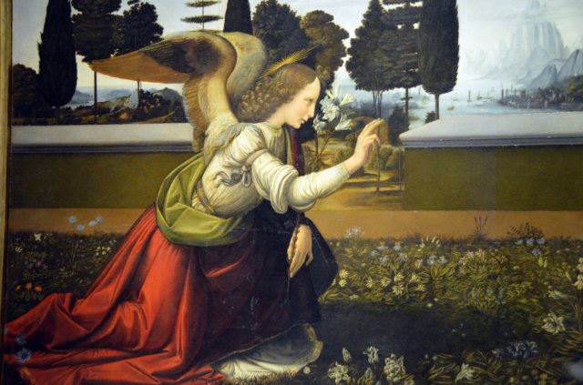 Detalle de la Anunciación. Leonardo (1472-1475)