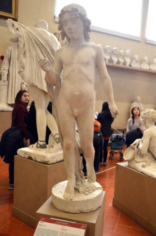 Sala Bartolini: Mujer de rodillas, rezando. Escultura de frente. Lorenzo Bartolini (1777-1850)