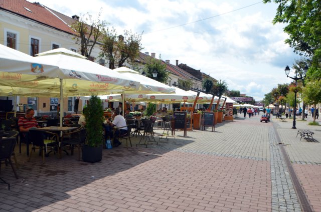 Bistrita: Calle peatonal, Liviu Rebreanu, adorno